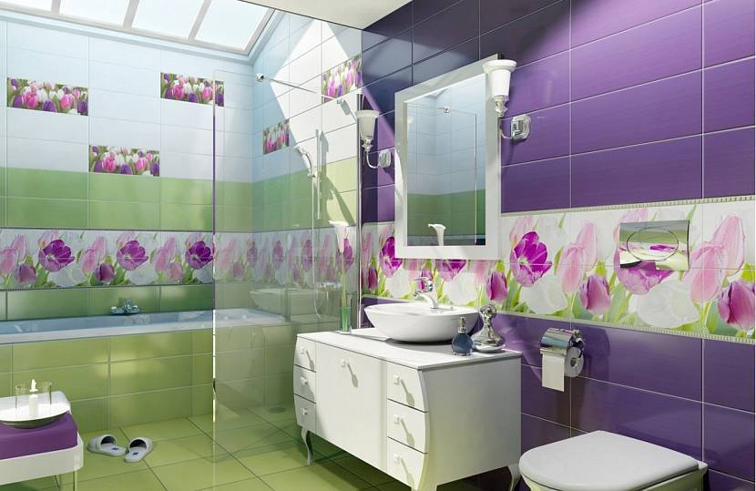 Это больше, чем просто классический вариант. Такое сочетание ассоциируется с весной и цветением лаванды, ириса и фиалок. Важны правильно подобранные оттенки. Великолепно смотрится оливковый с лавандовым. Также хорош с ним зелено-коричневый. А бирюзовому нужно разбавленные темно-сиреневый тона. Как правило, в цвета ванной комнаты вводят один или два густых тона и дополняют размытыми деталями.
