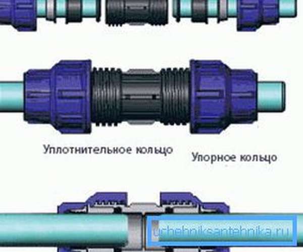 - обжимных фитингов. Считаются наиболее простыми в монтаже;