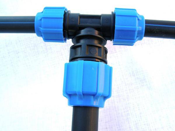 Для соединения трубы ПНД и поливочного шланга не потребуется специальная паечная аппаратура. Нужно лишь приобрести специальный фитинг компрессионного типа, для труб, произведенных из ПНД, лучше сразу в комплекте с запорно-регулировочным вентилем. Принцип стыкования трубы из ПНД и поливочного шланга аналогичен процессу объединения фрагментов труб. Фитинговые системы для присоединения шланга, на выходе оборудованы специализированным «выходом-елочкой», на который впоследствии натягивается шланг необходимой длины, и обжимается хомутом нужного размера. Установка фитинга с краном более удобна, его практичнее демонтировать при необходимости, с наступлением осенне-зимнего сезона. Для отключения подачи воды нет нужды перекрывать всю систему водоснабжения, достаточно закрыть выходной кран. Для более быстрого монтажа имеется готовый вариант — ПНД кран, где контроль напора воды и фитинг, для закрепления на трубе, представляют одно целое.