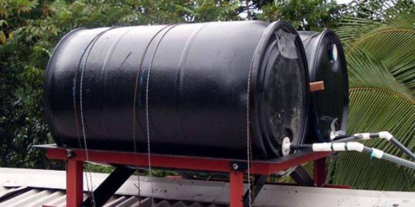 Простейшим решением солнечного водонагревателя является бочка, окрашенная в черный цвет и установленная на крыше. Внутридомовая магистраль подключается к этой бочке и подает подогретую воду в точки раздачи.