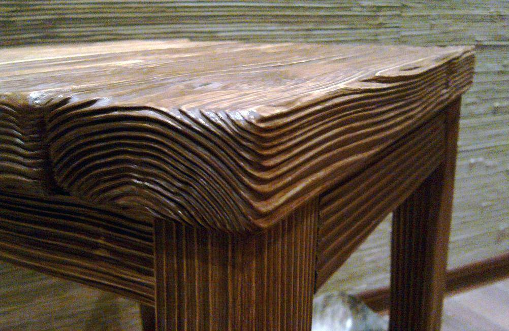 Этот прием является самым трудоемким и сложным способом старения мебели. По-настоящему качественного браширования древесины можно добиться только в условиях промышленного производства. Нужны специальные инструменты и приспособления – станок или фрезер.