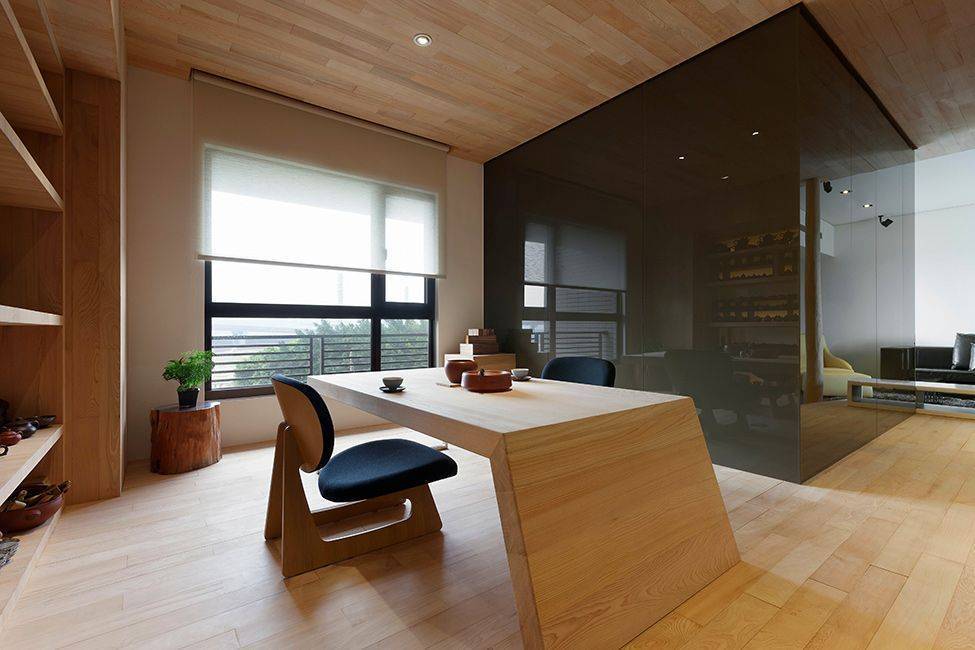 Отделка потолка и пола деревом в стиле эко-минимализм.