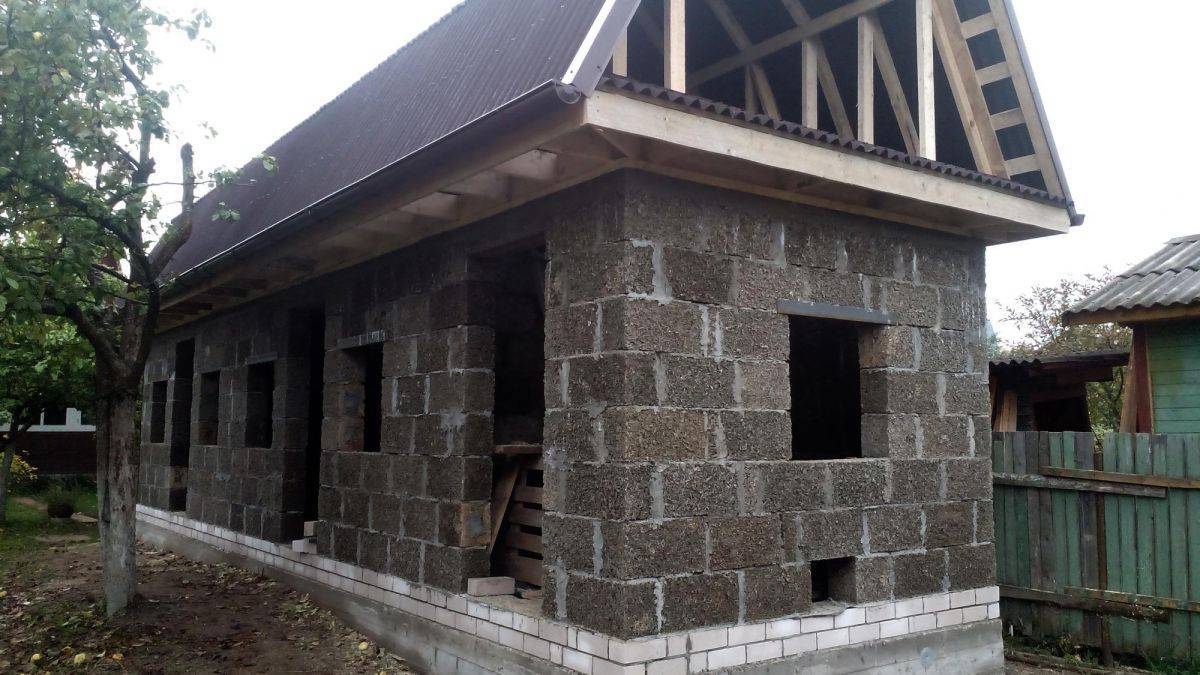 - облицовка и защита от дождя и прямого солнца необходима для долгой службы арболита без снижения его качеств. Кроме того, кровельный свес должен быть не менее 35-50 см.