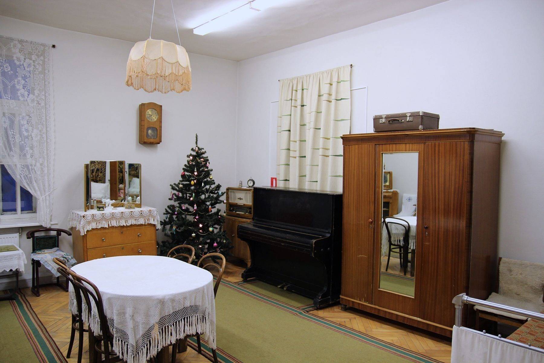 - Аутентичные аксессуары (радиоприемник, советские плакаты, книги с рецептами, цветы в горшках, кружевные салфетки, статуэтка, настенные или настольные часы).