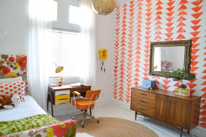 Дизайн и цветовая палитра стиля помогут оформить детскую комнату. Яркие цвета и крупные принты понравятся самым маленьким; подростки оценят удивительно эргономичное и мягкое кресло чашевидной формы. Кресло-мешок также полностью впишется в обстановку, ведь впервые такую модель предложили в далёких 60-х итальянские дизайнеры мебели.