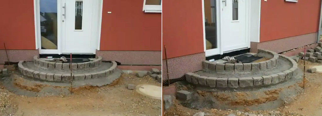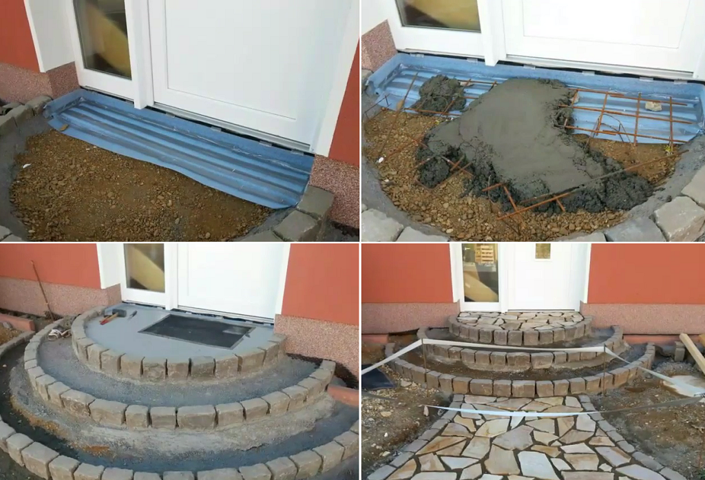 Облицовка крыльца тротуарной плиткой, материал продается в готовом виде, его так же можно изготовить самостоятельно по форме