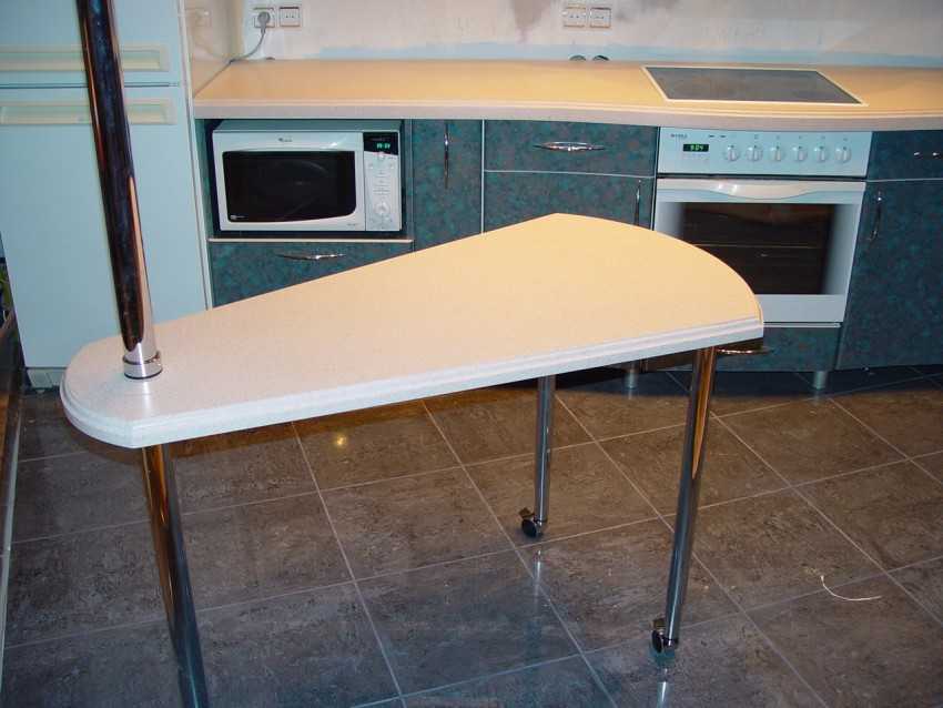Хороши для крохотных кухонь, где объект стоит в углу или возле стены. Однако сесть за него могут только две или три персоны. Если поставить стол в центр, то усядутся 4 человека. При этом увеличивать площадь поверхности смысла нет, иначе образуется солидный участок в центре, к которому неудобно тянуться.