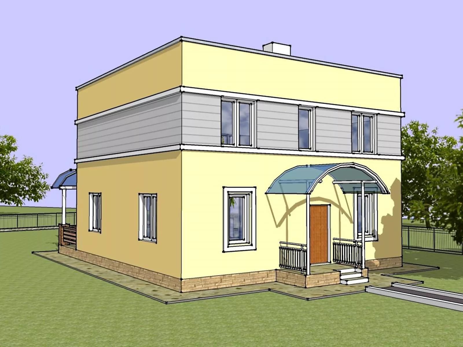 Если крыша не эксплуатируется, а коттедж невысокий, можно выполнить плоскую кровлю без парапета или установить вместо него ограждающие решетки или даже обойтись без них.