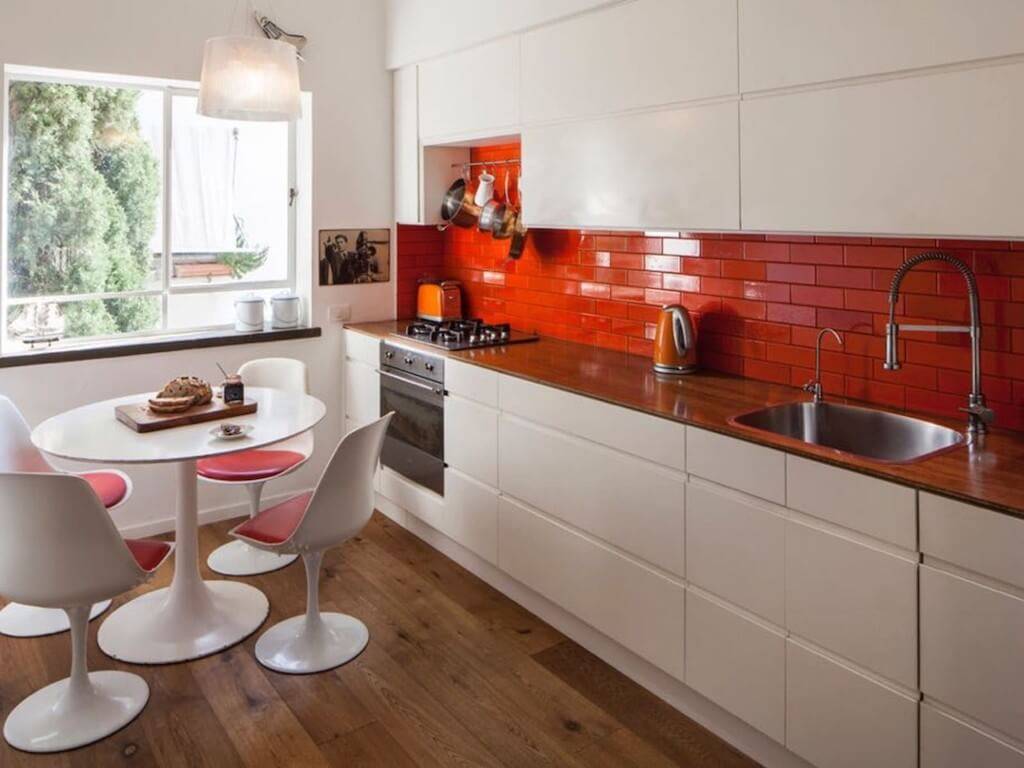 Еще один сложный цвет, который хозяйки боятся использовать в интерьере кухни. Если подобный страх, то можно включить этот цвет только на зимний сезон — он всегда ассоциировался с новым годом и рождеством.