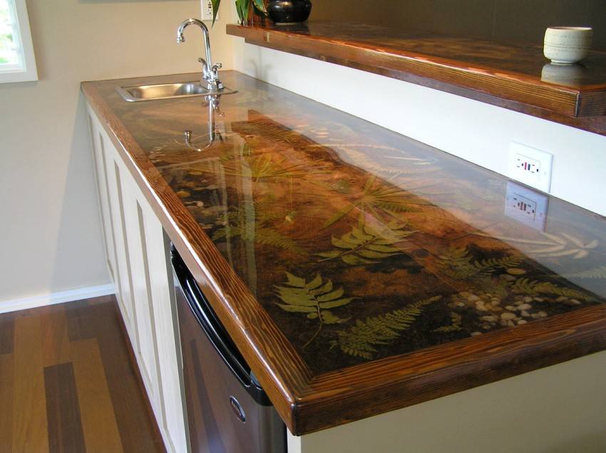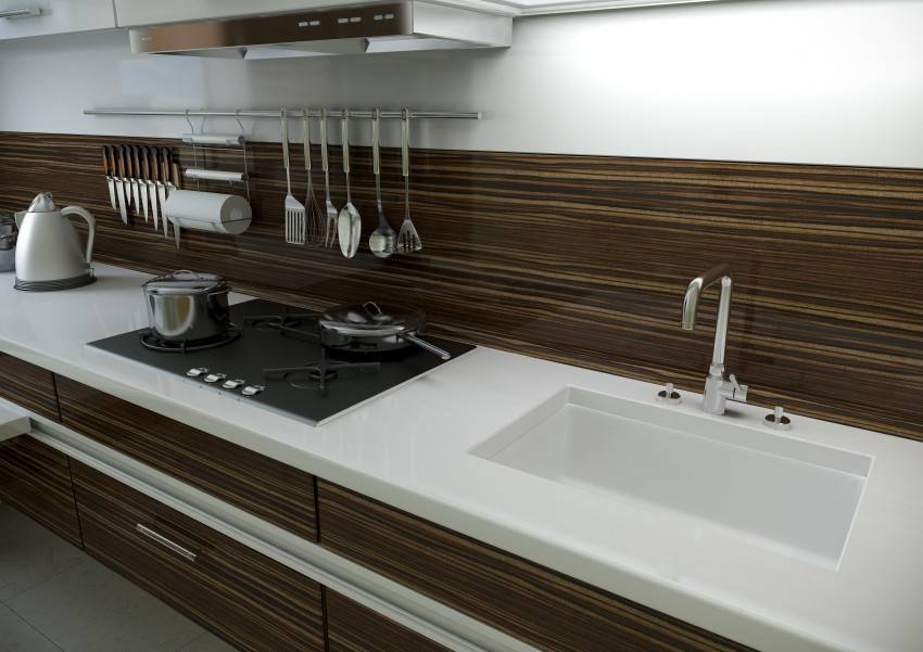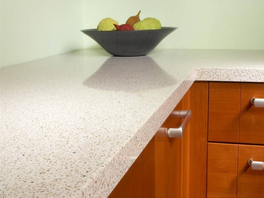 Красиво и неординарно в любое помещение впишется также столешница из искусственного камня. Такой вариант более экономичен, нежели использование камня натурального. Но при этом отличается своей экологичностью и прочностью.
