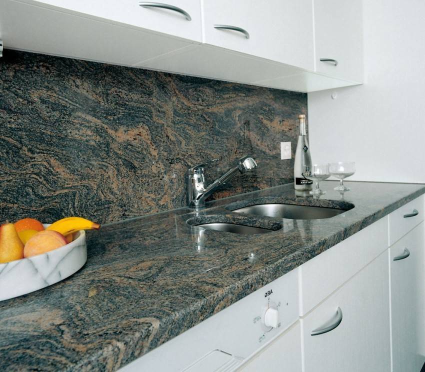 Столешница из гранита, безусловно, номер 1 в категории долговечности столешницы. Для кухонной столешницы вы можете выбрать из 200 разновидностей гранита (аналогично мрамору и песчанику). Его нельзя испачкать, поцарапать, можо без страха ставить на него горячие кастрюли, разбивать мясо молотком в отбивные – оно устойчиво к механическим повреждениям. Гранит имеет настолько маленькие поры, что вам даже не нужно пропитывать его.