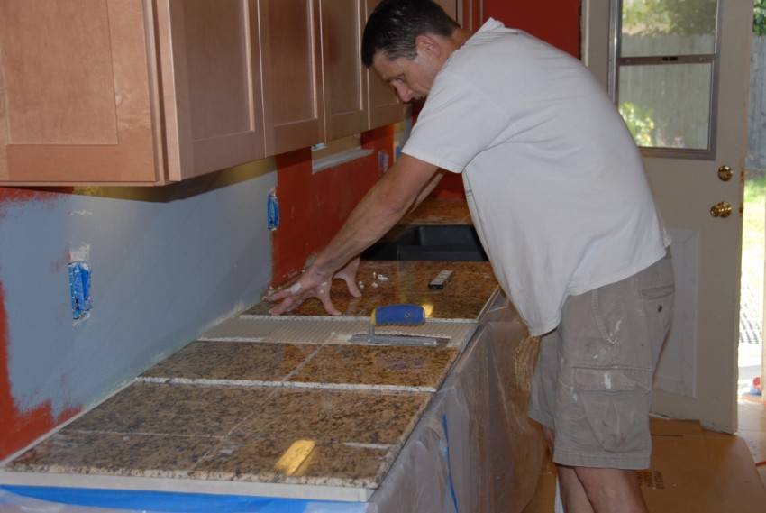 Довольно распространен вариант столешницы из плитки. Выбор керамики очень велик и можно подобрать абсолютно любой дизайн.