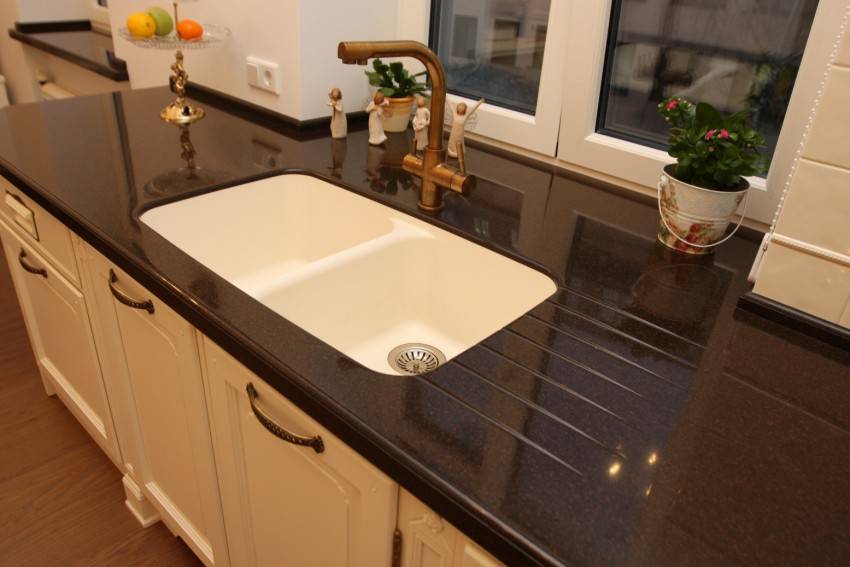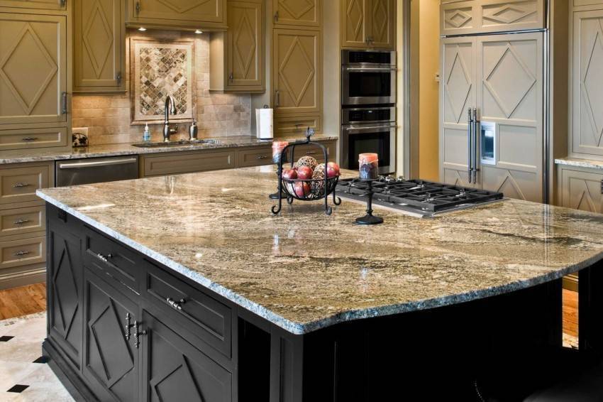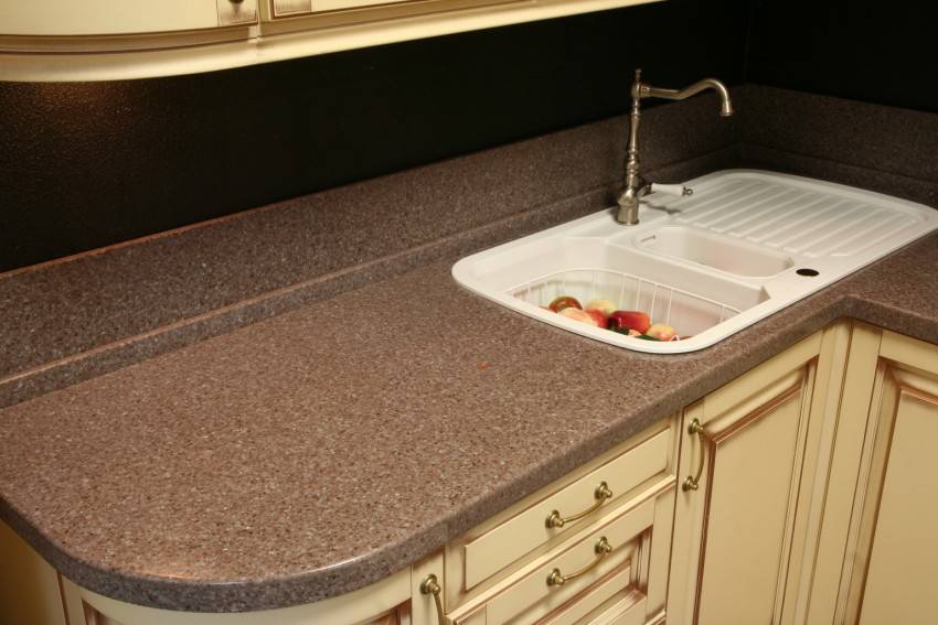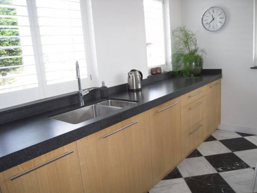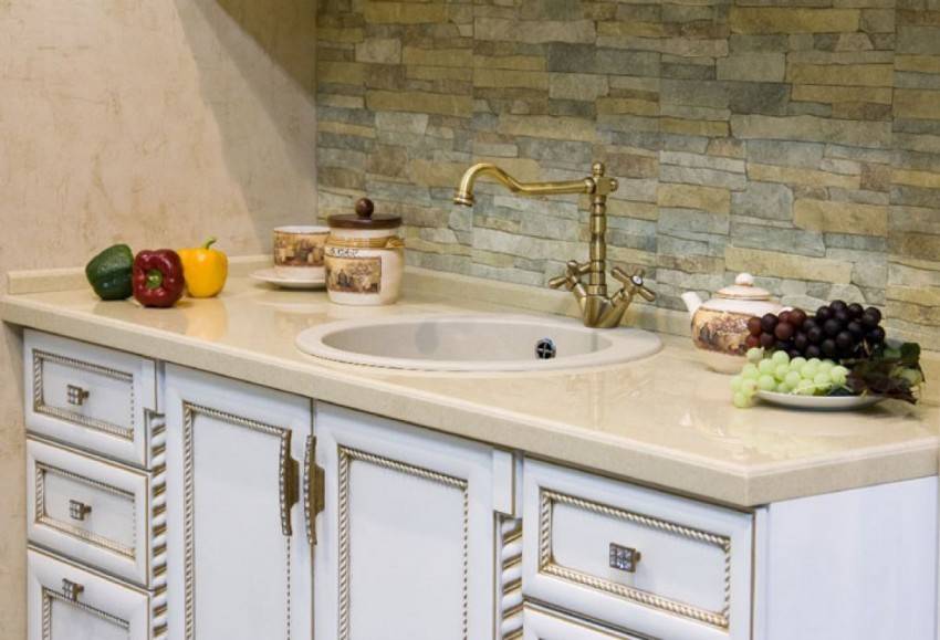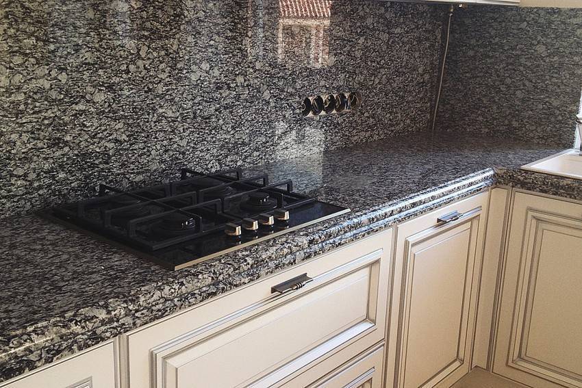 Камень, рекомендуемый для кухонных столешниц, – это гранит, порфир и базальт, поскольку они устойчивы к окрашиванию. Вы также можете выбрать мраморную или травертиновую столешницу, но столешницы от них требуют специальной защиты от пятен и впитывания воды ( мрамор легко «испачкается», даже лимонный сок повредит его). Каменная столешница устойчива к высоким температурам, но некоторые требуют пропитки перед впитыванием грязи и влаги.