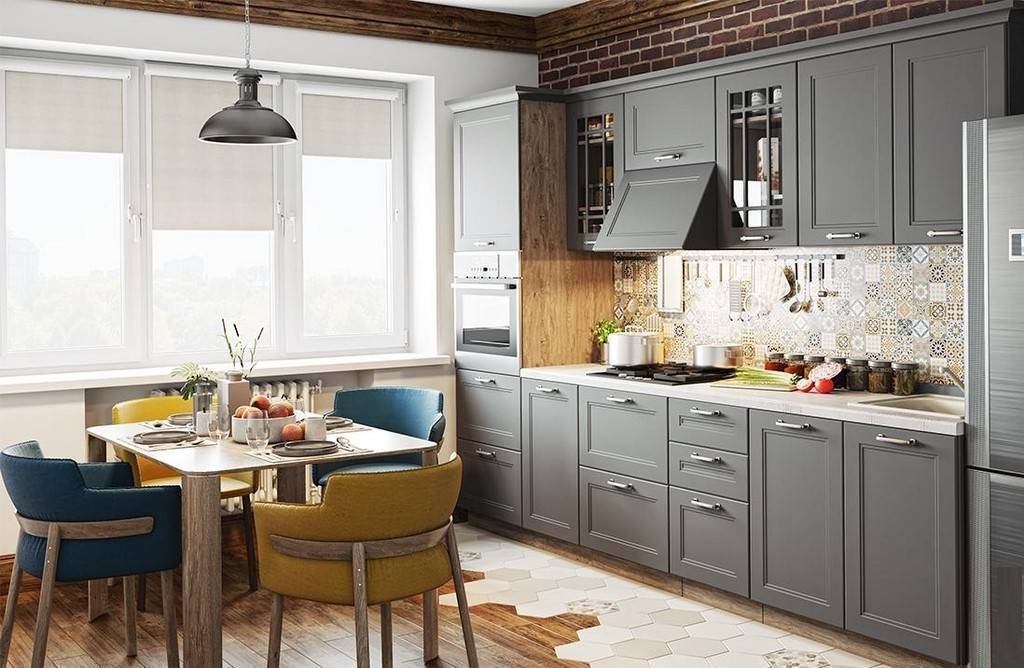 С серым гарнитуром гармонично сочетается техника любого цвета в одном стиле ‑ как встроенная, так и отдельностоящая: