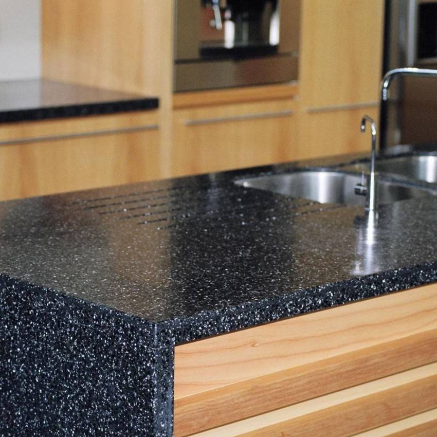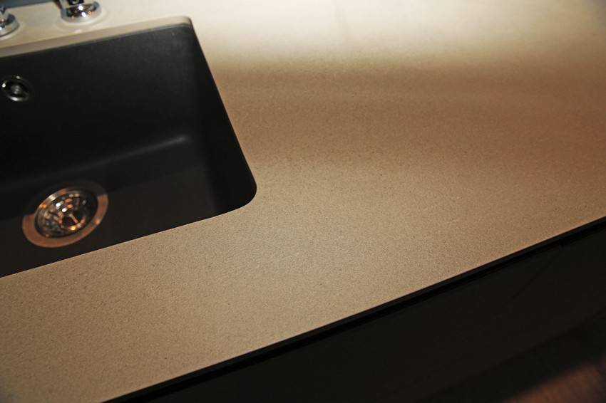 Поскольку мы наблюдаем дизайнерскую моду на использование в интерьерах более текстурированных и тактильных поверхностей на мебели, всяческих напольных покрытиях и различных атрибутах дома, это распространяется и на столешницы.