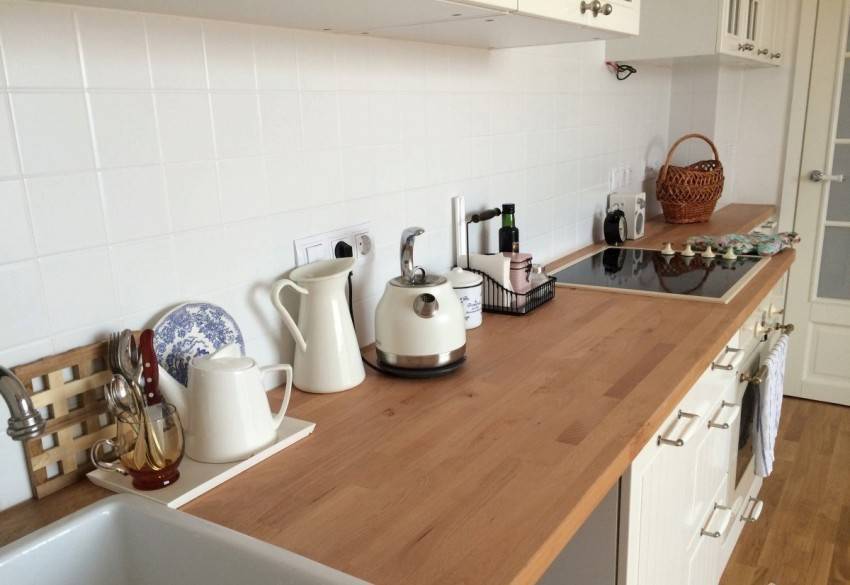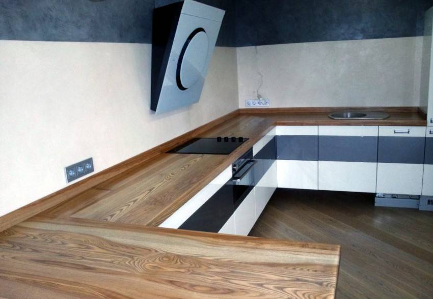 Лучшим материалом для изготовления столешницы считаются жёсткие породы деревьев: дуб, бук, ясень. Мягкие сорта не используются из-за высокой вероятности появления сколов, царапин, вмятин.