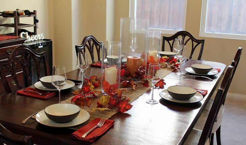 Натуральные украшения стали ещё одной тенденцией дизайна, и букет свежих цветов на обеденном столе полностью попадает в тему. Рекомендуется использовать вазы простых форм, прозрачные или однотонные
