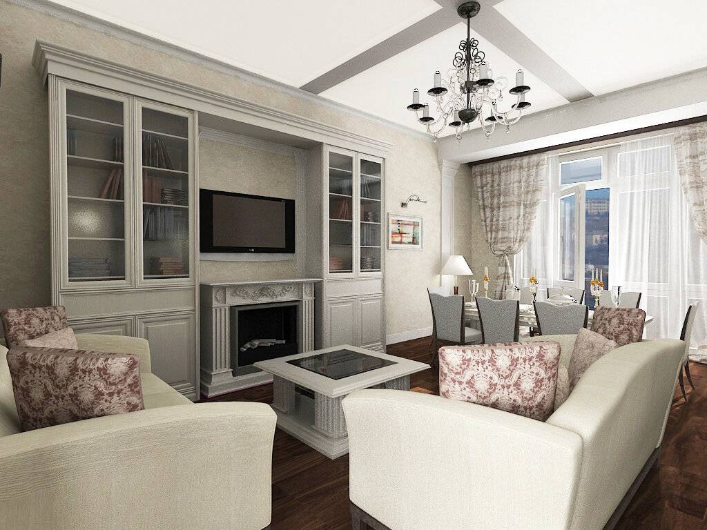 Внимание! Светлая гостиная в классическом стиле будет выглядеть просторной и более яркой, если там не хватает естественного освещения.