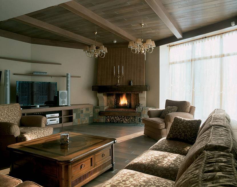 Стилистическое оформление гостиной с камином
