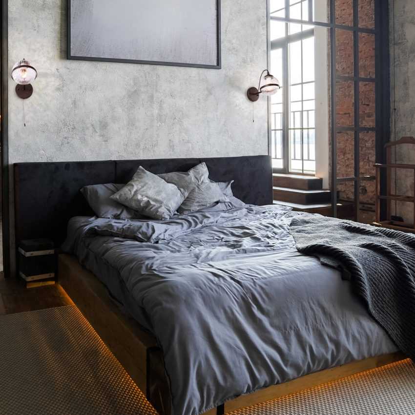 Уровень освещения в спальне зависит от интенсивности естественного потока, а также габаритов комнаты. Для маленького помещения часто достаточно базового источника. В дополнение можно использовать прикроватные ночники. Чем больше по площади или вытянутее по конфигурации комната, тем лучше надо работать над освещением.