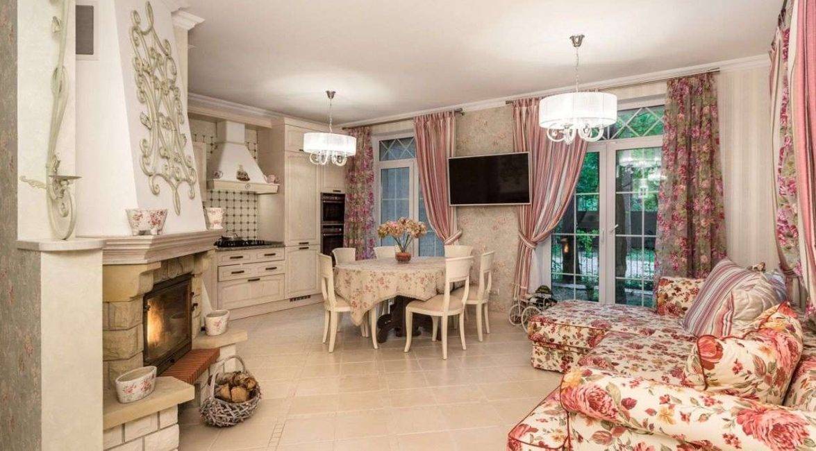 Особым уютом и нежностью наделяют обстановку зала светильники с текстильными плафонами, которые можно изготовить собственноручно. Абажур дополняют сплетенным кружевом, рюшами, вышитой или расписной тканью. Благодаря такому оригинальному декоративному акценту гостиная в стиле прованс наполняется теплом, новыми красками и приобретает определенное настроение.