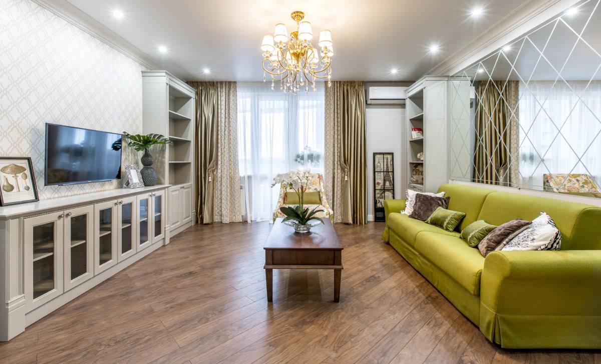 Арт-деко. Шик и блеск этому стилю придают зеркальные вещи, необычные формы, шахматные сочетания цветов. Мебель в стиле арт-деко может быть из темного дорогого дерева, хромированных вставок, зеркальной мозаики. Всевозможные подсветки создадут игру света и дополнят гостиную атмосферой роскоши и праздника.