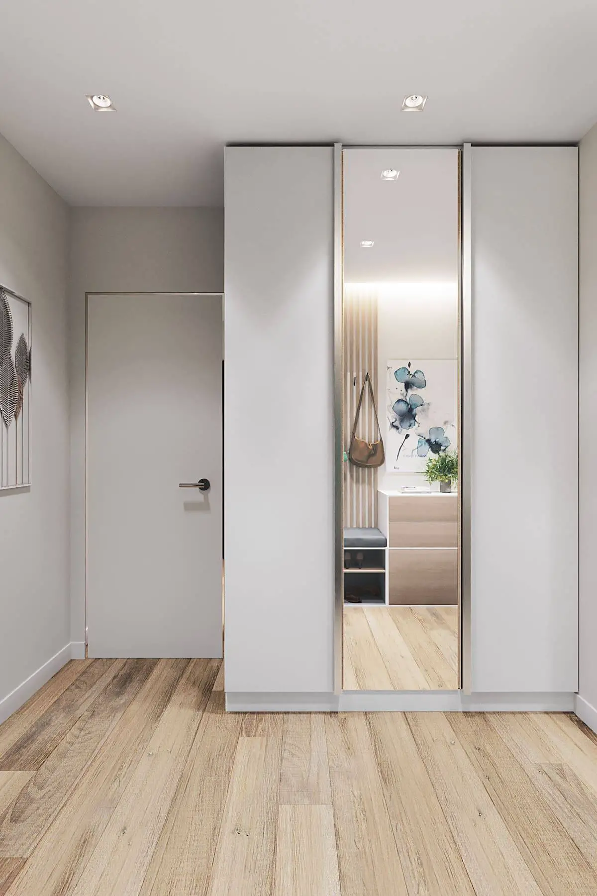 Разрабатывая планировочные решения, первое на что нужно акцентировать свое внимание – выбор мебели. Самым распространенный вариант – установить в прихожей красивый шкаф-купе, который не только украсит помещение, но и разнообразит цветовую палитру. Это будет удачным решением для маленьких прихожих