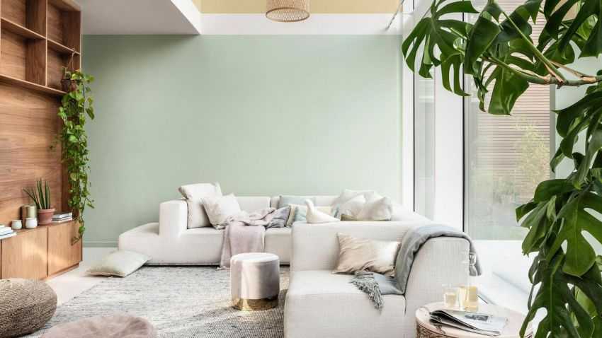 Если гостиная слишком маленькая, рекомендуется использовать пастельные тона. Они помогут визуально расширить пространство.