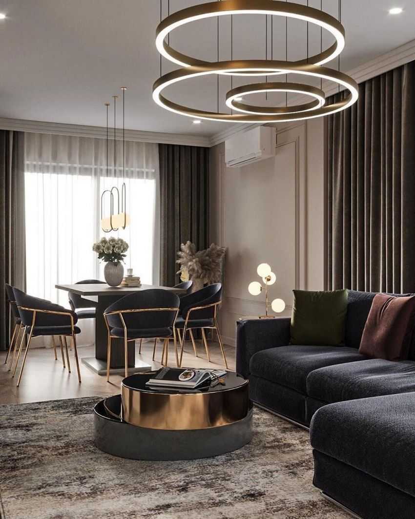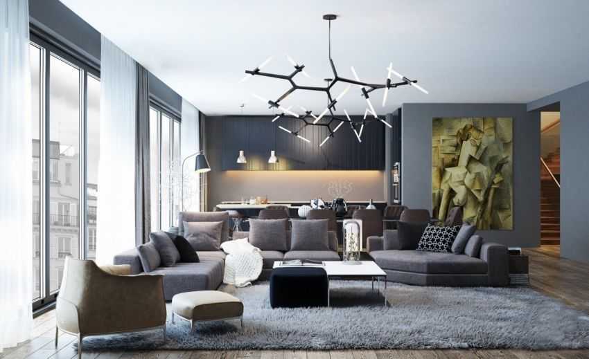 Современная гостиная — это место для сбора семьи, друзей, празднования радостных событий и полноценного релакса после трудовых будней. Миниатюрные, камерные комнатки остались в прошлом и уступили место просторным помещениям.