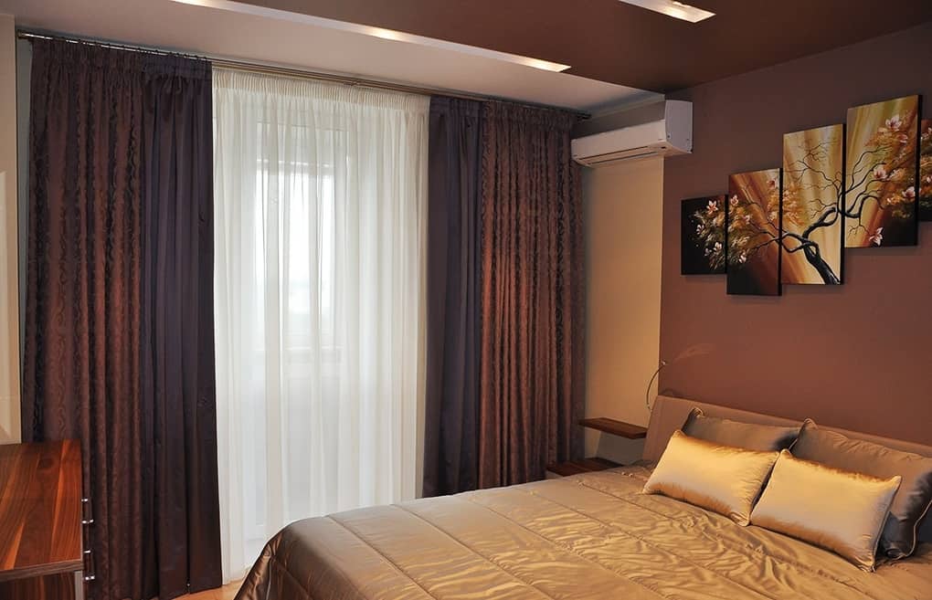 С практической точки зрения, не так важен дизайн оконных занавесок, как материал, из которого они сделаны. Для спальни очень важна звукоизоляция и защита от интенсивного солнечного света, которую в полной мере можно обеспечить при помощи плотных штор. Помните, одним из условий вашей высокой работоспособности и хорошего настроения является здоровый и качественный сон, которого можно добиться только в правильно обустроенной комнате. К тому же, шторы из плотных тканей, независимо от стилистики заданного интерьера, выглядят гораздо презентабельнее и создают уютную атмосферу в комнате.