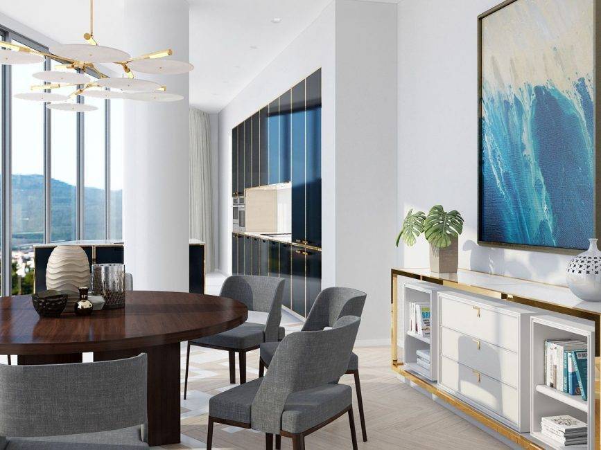 Модульные конструкции, популярные в интерьерных салонах, можно выбрать для помещений скромных размеров. Раздвижные столы, раскладные диваны или кресла-трансформеры вмещают большую компанию гостей, а в сложенном виде занимают минимум места. Покупка модульного ансамбля — рациональное решение для квартиры-студии. Например, гостиная с диваном-кроватью и раздвижным столом легко превращается в спальню или рабочий кабинет.