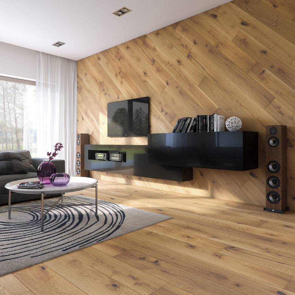 Отделка под дерево в гостиной — деревянная стена в гостиной