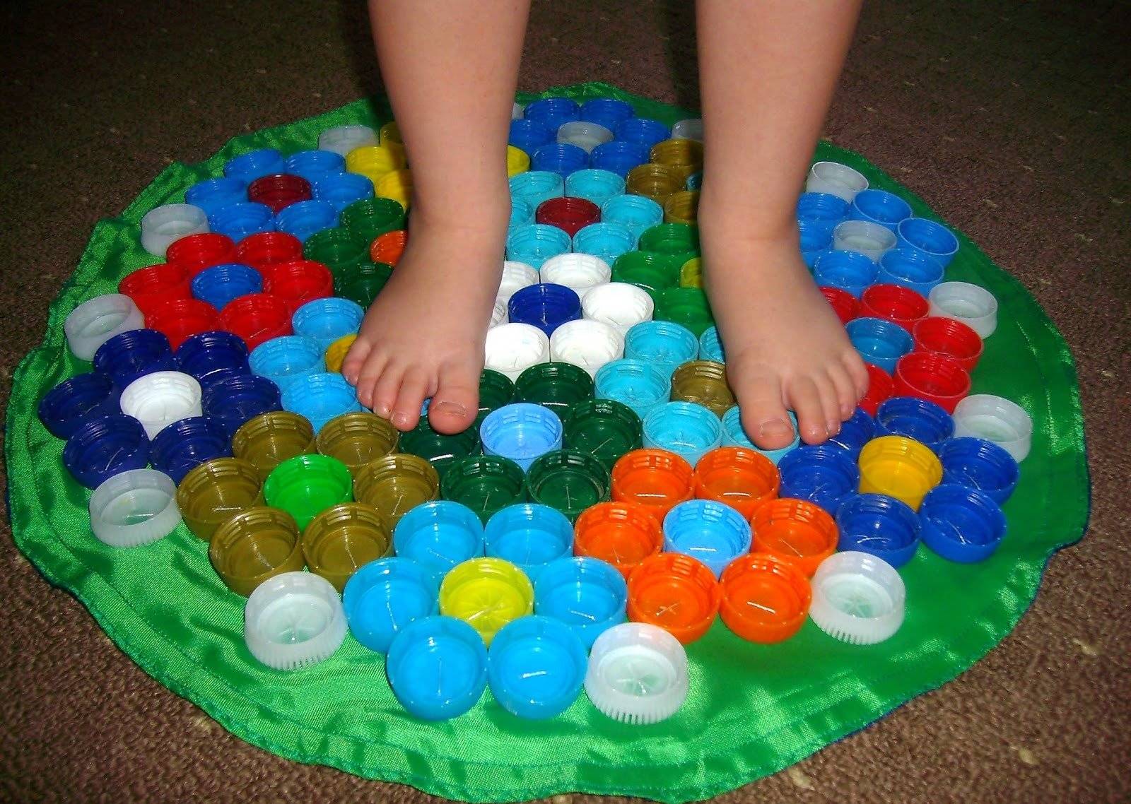 Родители детей, страдающих плоскостопием, используют обратную ребристую сторону крышек для оздоровительных процедур. В этом случае соединять крышки нужно с помощью плотной бечевки, чтобы в процессе ходьбы по нему коврик не расползался.
