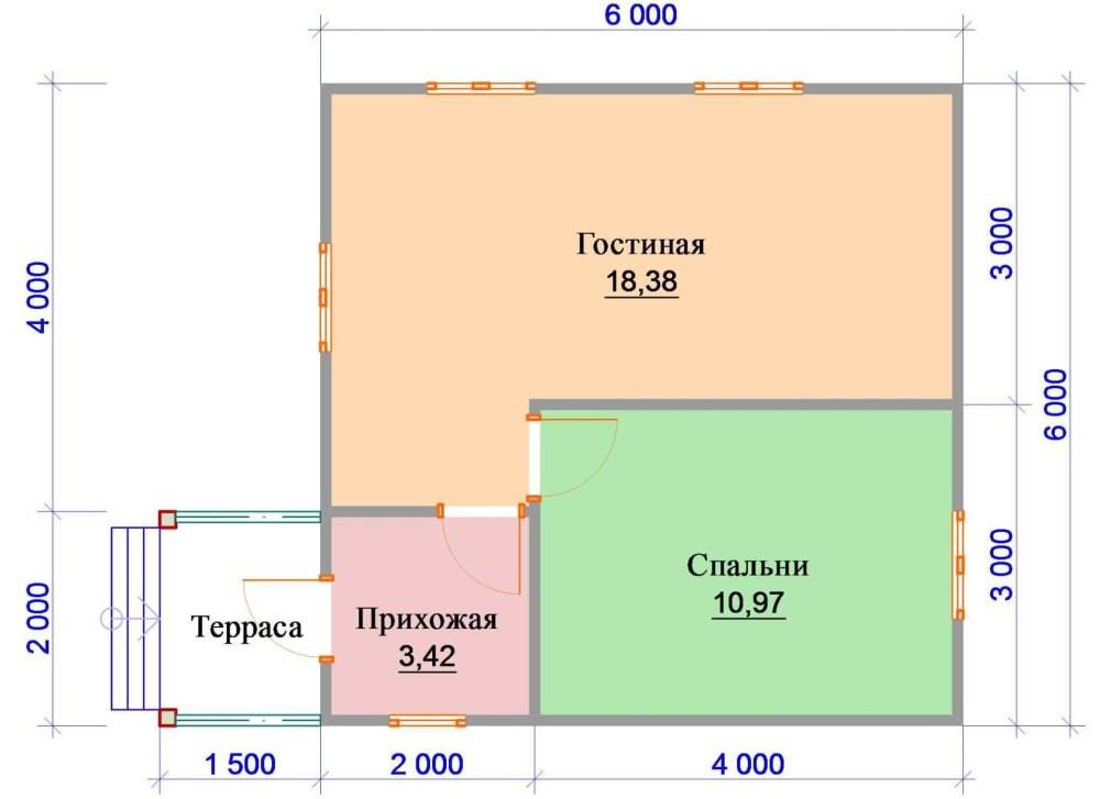 Преимущество распространённого проекта 6х6 очевидно, ведь стандартная длина доски как раз составляет 6 м. Процесс строительства, не осложнённый дополнительными проблемами по поиску нестандартных материалов, пойдёт гораздо быстрее.