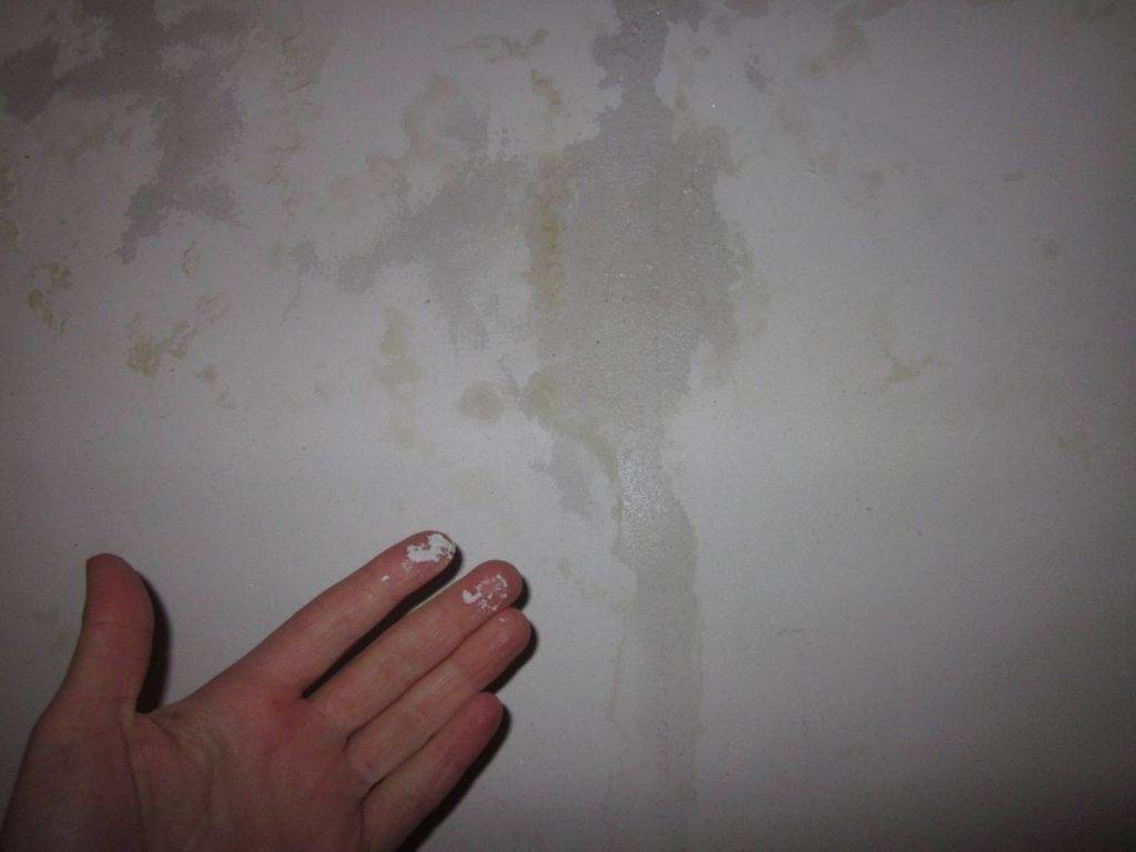- Шпаклевка плохо реагирует на повышенную влажность и прямое воздействие жидкости. Быстро размокает и теряет свою твердость. Потому материал не используют для отделки мокрых точек в здании.