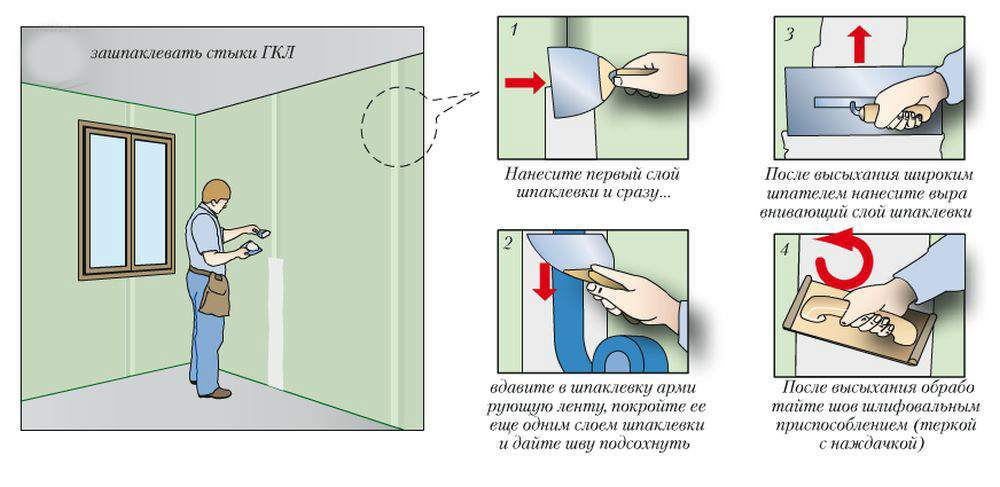 Шпаклевка швов выполняется следующим образом: