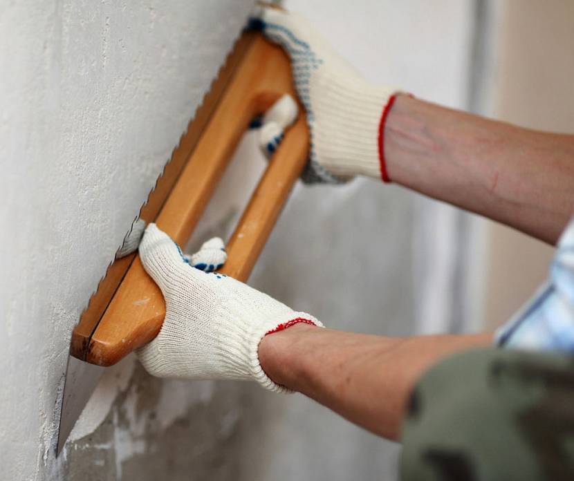 - Подготовка стеновых поверхностей – на этом этапе требуется тщательно очистить стены от старых обоев, клея, слоев краски и осыпавшейся штукатурки.