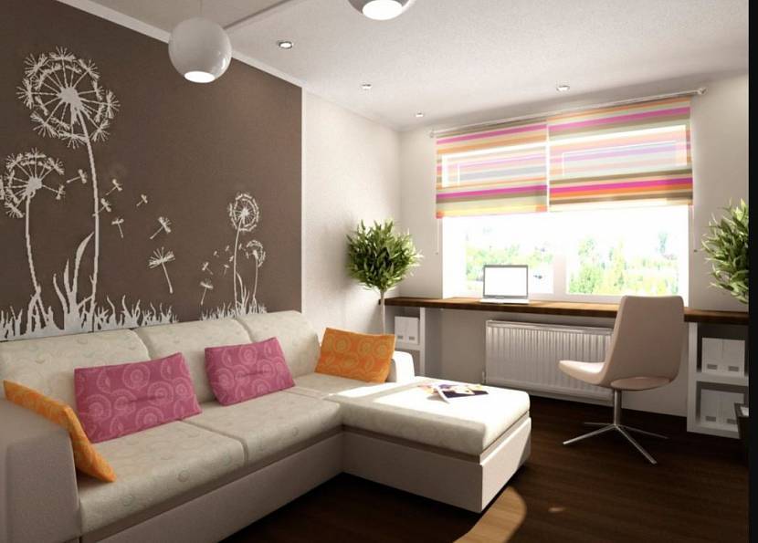 При оформлении небольшой комнаты важно соблюдать меру и не бояться пустых стен. Небольшое помещение не стоит перегружать большим количеством декоративных элементов