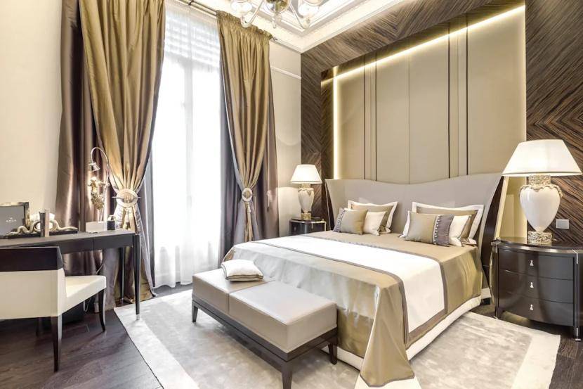 Малогабаритная спальня в современной классике с красивым декорированиемИсточник behance.net