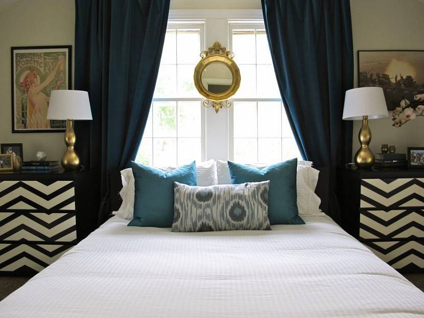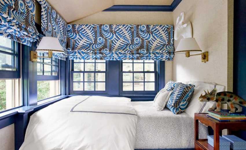 Сине-голубая палитра успокаивает, благотворно влияет на общее состояние организма и способствует крепкому сну. Но, как и с другими цветами, темные оттенки синего следует совмещать со светлыми.