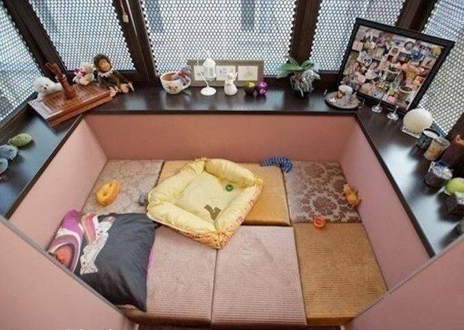 спальное место. Нестандартное решение, решающее многие проблемы владельцев малогабаритных квартир. Здесь можно разместить либо полноценное спальное место, либо зону просмотра телевизора с большим лежаком;