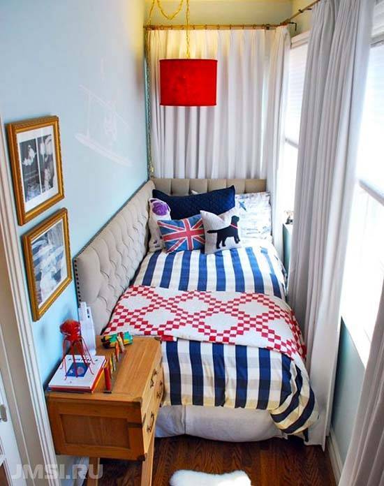 Что касается кровати, то лучшим вариантом, конечно же, будет установить односпальную кровать или раскладной диван, так как это, опять же, поможет сэкономить пространство. Если вам позволяют ваши финансы, достаточно неплохим вариантом будет, кровать под заказ.
