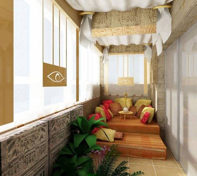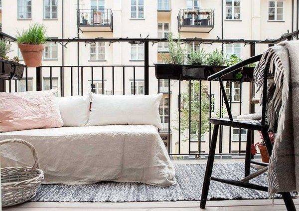 Даже на совсем небольшом балконе можно сделать «лежачее» место.