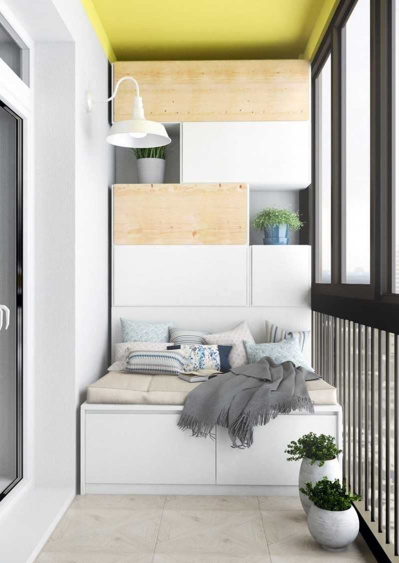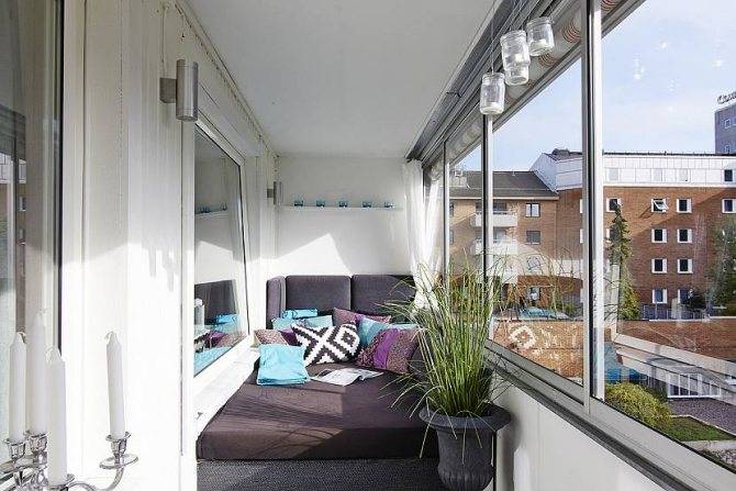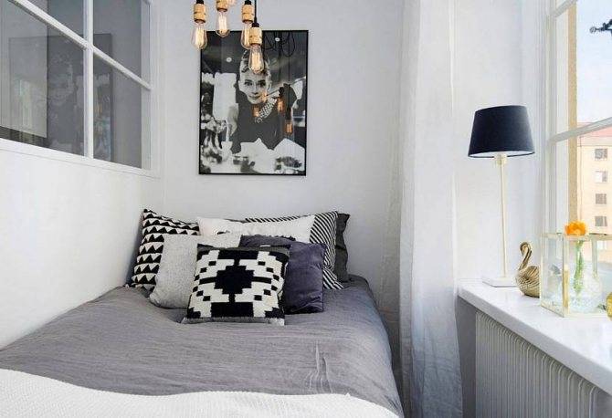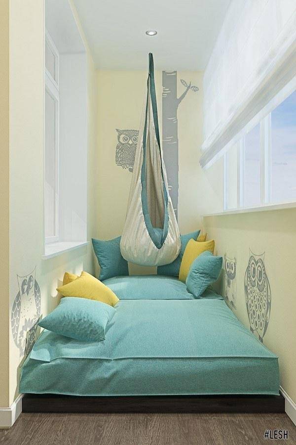 При составлении проекта, не забудьте сразу подыскать подходящую мебель. Это может быть кровать со съемным матрасом или раскладная. Желательно, чтобы ее можно было смонтировать на месте, потому что она может не пролезть в узкие балконные двери.