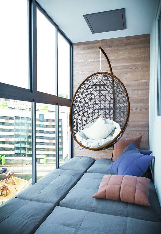тихий уголок для чтения и отдыха. На балконе можно поставить кресло и торшер, кресло-качалку, скамью лицом к окнам, диванчик и даже лежак. Если есть средства и желание можно закрепить гамак или подвесные кресла;