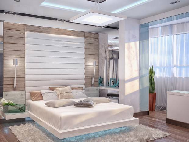 Создать дизайн спальни сегодня можно в самом широком стилистическом диапазоне, ведь для этого есть и подходящие материалы, и достойные фантазии. В интерьере могут появиться плавные линии, многоуровневые потолки, необыкновенной красоты подсветки, комбинационные цветовые решения. Для небольших пространств предпочтителен светлый фоновый спектр. Таким образом, его можно будет дополнительно увеличить.