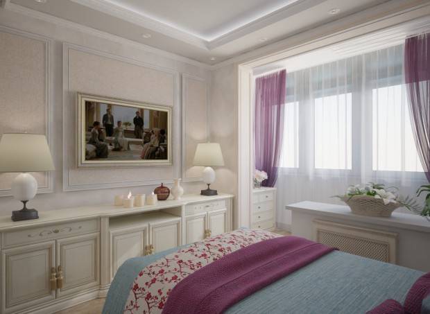- можно разделить спальню на разные зоны (например, рабочий кабинет, будуар и место для релаксации).