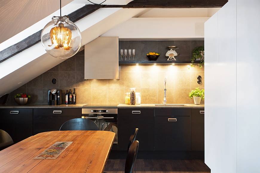 Стены могут быть расположенными под разными углами, что также стоит учитывать при планировке и зонировании помещения. Все «неудобные» места под крышей можно использовать для обустройства систем хранения вещей.