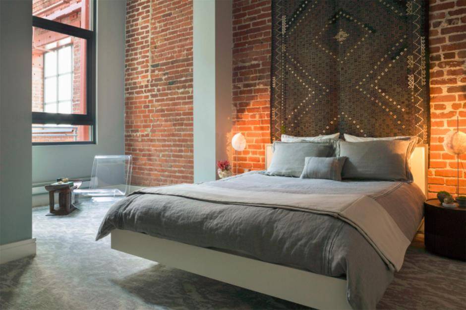 Лофт. Спальня, оформленная в брутальном стиле, имеет ярко выраженный мужской характер. Непременные атрибуты лофта, подходящего для комнаты любого размера, — необработанное дерево, грубая штукатурка, искусственно состаренная кирпичная кладка, простая современная кровать. Вы можете не прятать трубы и вентиляционную систему — они органично дополнят стиль. В качестве оригинального декора подойдет хромированная лампа.