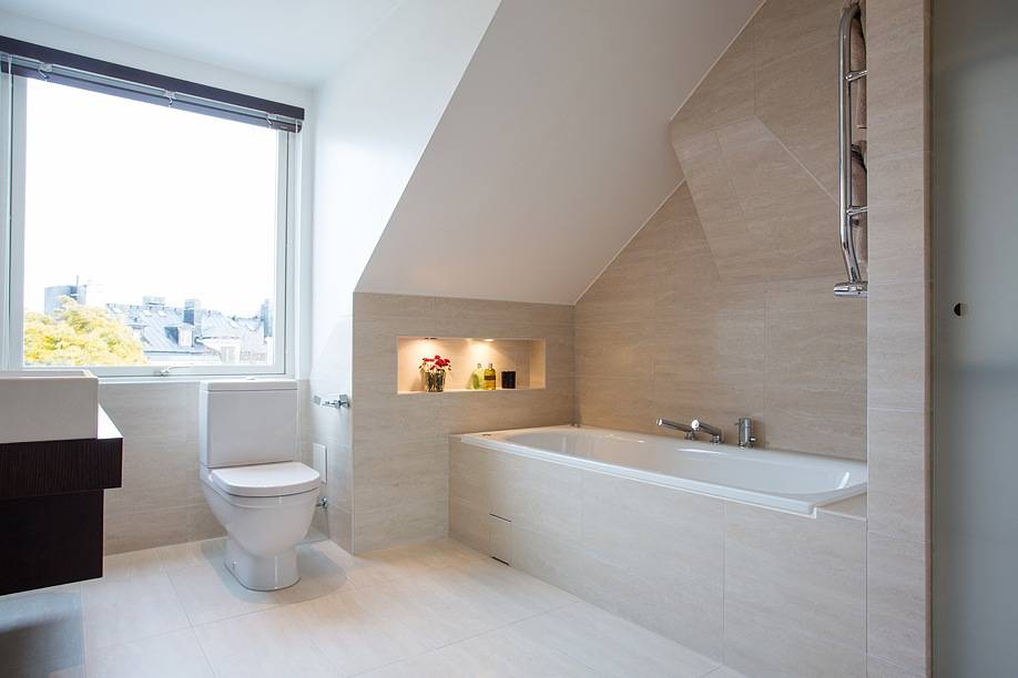 Масса преимуществ ванной комнаты на мансарде заставляет нас более внимательно присматриваться к подобным проектам.